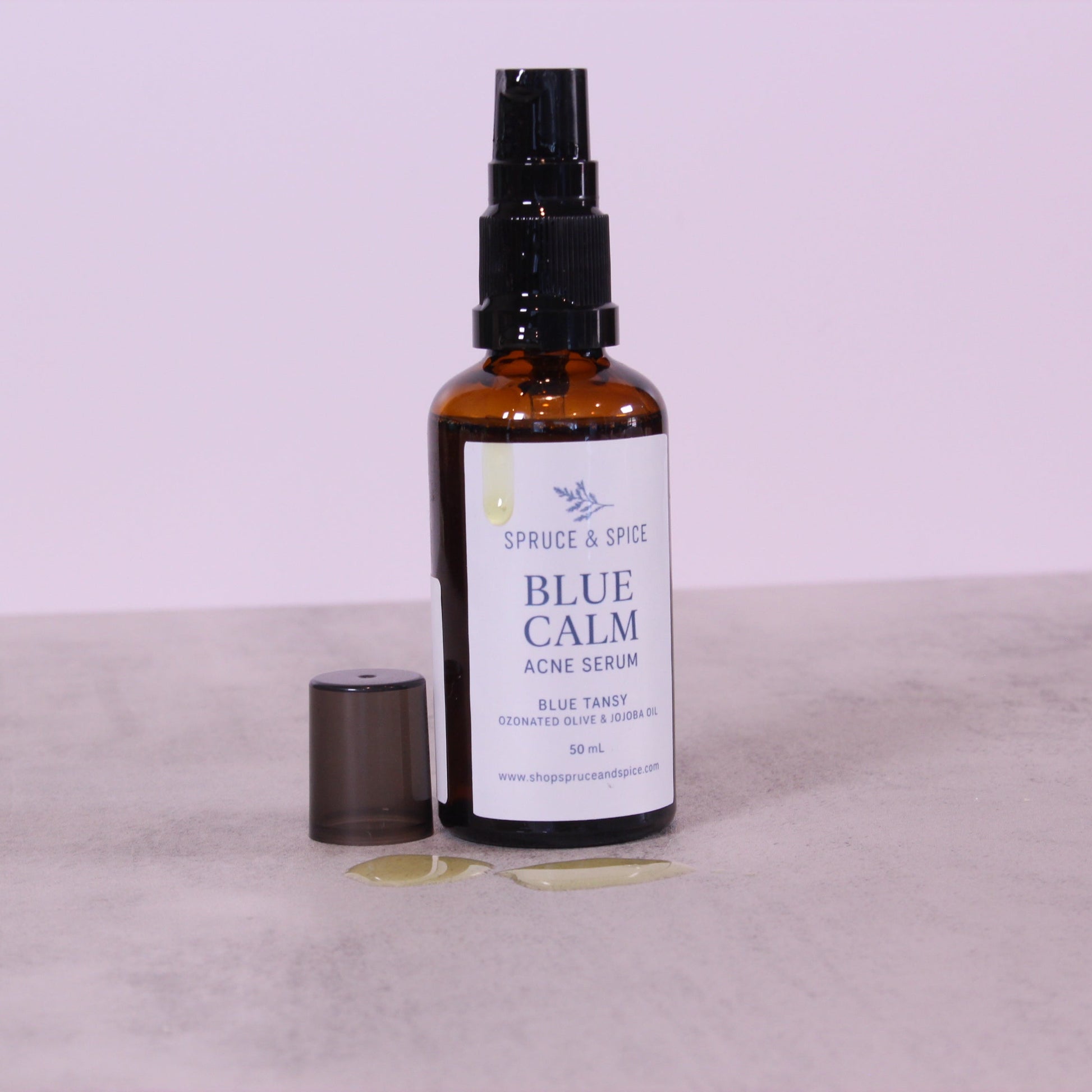 Clear acne-prone skin naturally with our Blue Calm Acne Serum. Infused with ozonated oils, blue tansy, and tamanu to calm inflammation, fight breakouts, and support healing without harsh chemicals.